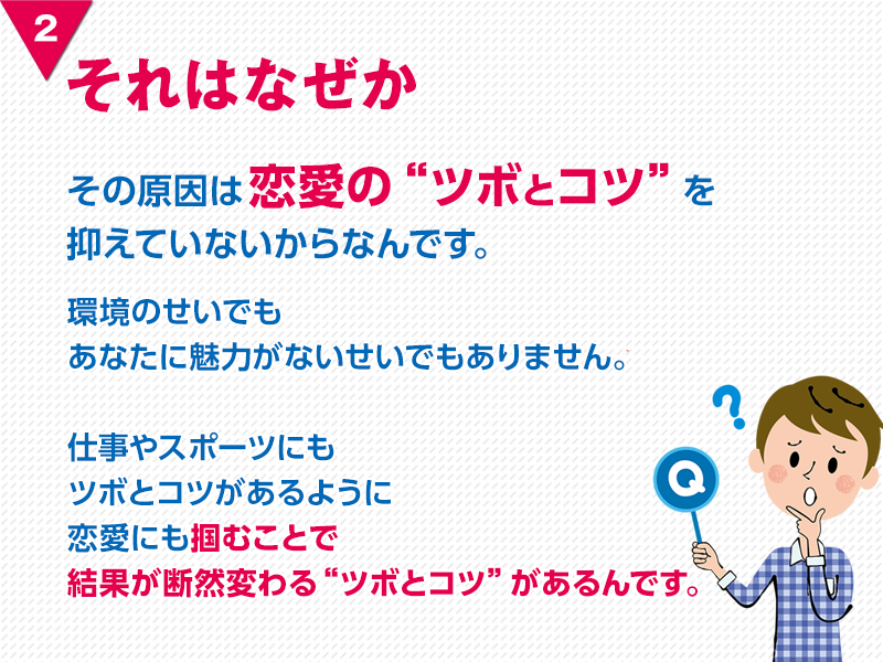 同じお悩みを持っている多くのお客様が挑戦し、変わってきました。彼女が出来たことがない人こそご相談下さい。