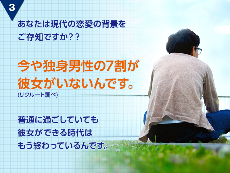 同じお悩みを持っている多くのお客様が挑戦し、変わってきました。彼女が出来たことがない人こそご相談下さい。