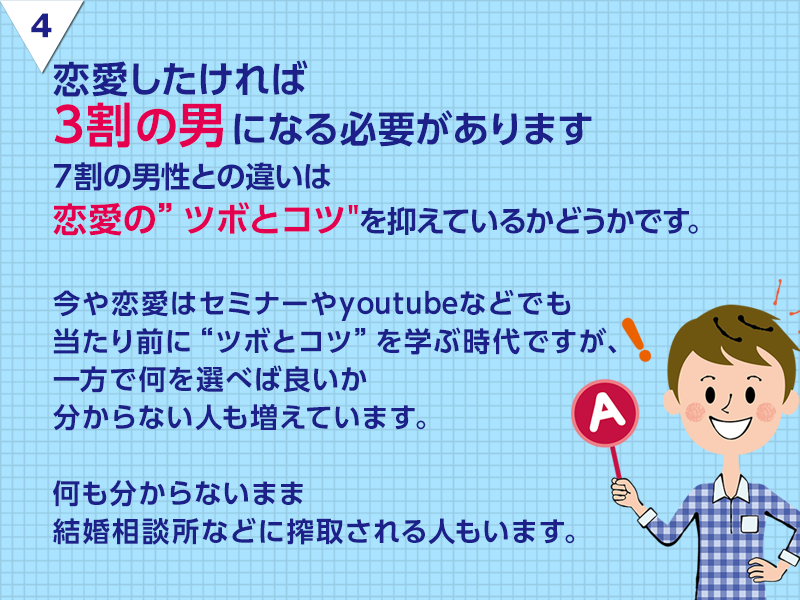 また女性がどのようなことを求めているのかが分かり、自分のアプローチの仕方を見直すことができ良かったです!